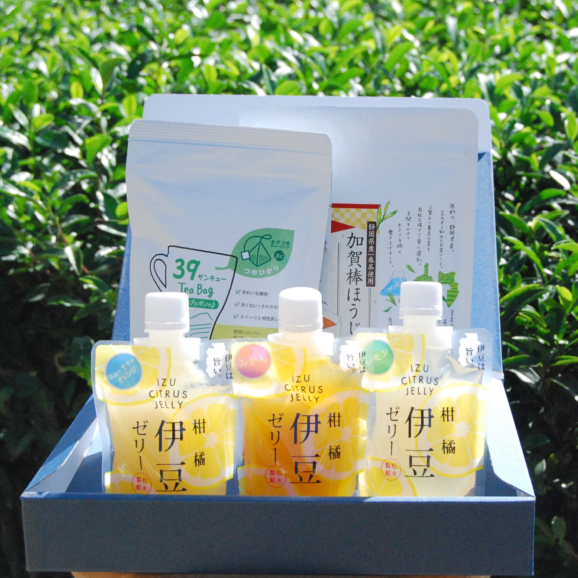 【箱入ギフト】伊豆ゼリー3種と加賀棒ほうじ茶・煎茶つゆひかりティーバッグセット